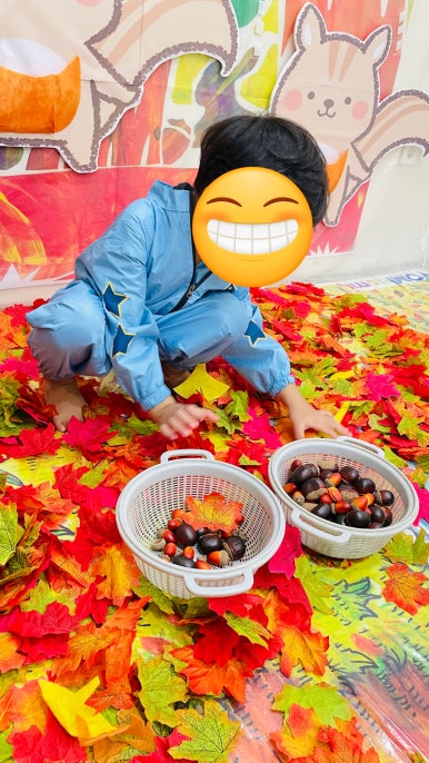 도토리와 밤을 찾아 다람쥐 친구들에게 나눠주는 놀이를 했답니다. 🐿️