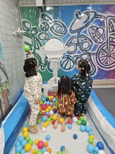 교실 문을 열고 들어온 요미들은 사방에 펼쳐진 알록달록한 공들을 보며
